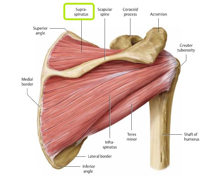 극상근 통증 유발점과 연관통 극상근은 팔을 외전(Abduction)시키는 동작을 한다. 극상근의 가장 중요한 역할은 상완골두(Humeral head)를 관절와(Glenoid fossa)에 안정시키는 작용이다. 팔을 들어 올릴때 발생 할 수 있는 상완골과 견봉(Acromion)의 충돌을 막아주는 근육이 바로 극상근(Supraspinatus)이다.