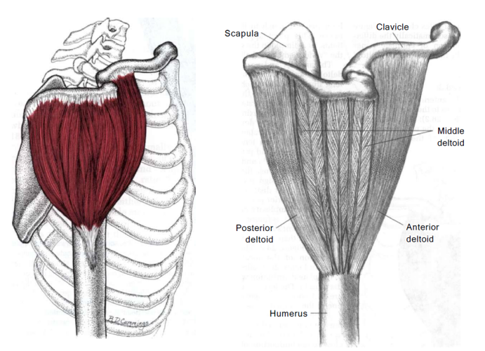 삼각근(Deltoid muscles) 삼각근은 경추5번-6번 신경근(C5-6 Spinal root)에서 나와 후삭(Posterior cord)을 통해 액와 신경(Axillary nerve)의 지배를 받는다. 상완골 외전(Humerus abduction) 시에 삼각근이 작동하는데 특히 팔을 90도에서 180까지 들어 올릴 때 가장 크게 작용한다.